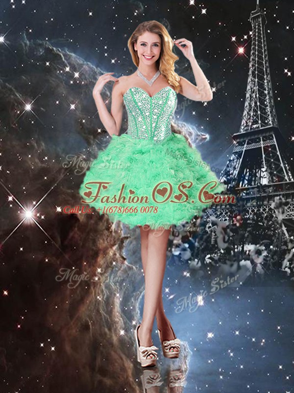 Sweetheart Sleeveless Vestidos de Quinceanera Floor Length Beading and Ruffled Layers Apple Green Organza