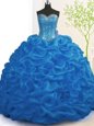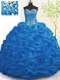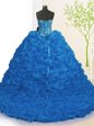 Sweetheart Sleeveless Vestidos de Quinceanera With Brush Train Beading and Ruffles Royal Blue Organza