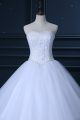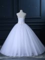 Sweetheart Sleeveless Wedding Dresses Floor Length Beading and Lace White Tulle