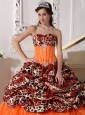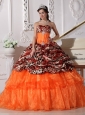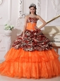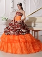 Home >  Quinceanera Dresses >  Fashionable Quinceanera Dresses > Sweetheart Sweep / Brush Train Leopard and Organza Appliques Ball Gown