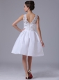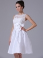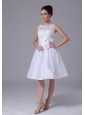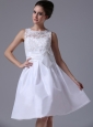 Taffeta A-Line Scoop Knee-length Beach / Destination Short Wedding Dress With Bowknot
