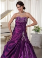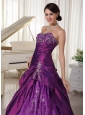Home >  Quinceanera Dresses >  Perfect Quinceanera Dresses > Taffeta and Organza Eggplant Purple A-line Sweetheart Quinceanera Gowns With Appliques and Beading