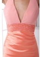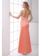 Home >  Prom Dresses >  Sexy Prom Dresses > Taffeta Column Halter Backless Floor-length Ruching Watermelon Prom Dress