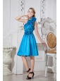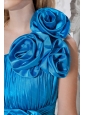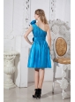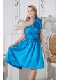 Taffeta Hand Made Flowers One Shoulder Blue Dama Dress