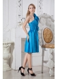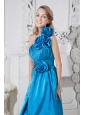 Home >  Special Occasion Dresses >  Dama Dresses for Quinceanera > Taffeta Hand Made Flowers One Shoulder Blue Dama Dress