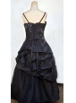 Home >  Special Occasion Dresses >  Little Girl Pageant Dresses > Taffeta Simple A-line Floor-length Navy Blue Straps Beading Little Girl Pageant Dresses