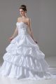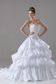 Home >  Wedding Dresses >  Latest Wedding Dresses > Taffeta Sleeveless Bridal Gown Brush Train and Embroidery and Pick Ups