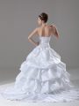 Taffeta Sleeveless Bridal Gown Brush Train and Embroidery and Pick Ups