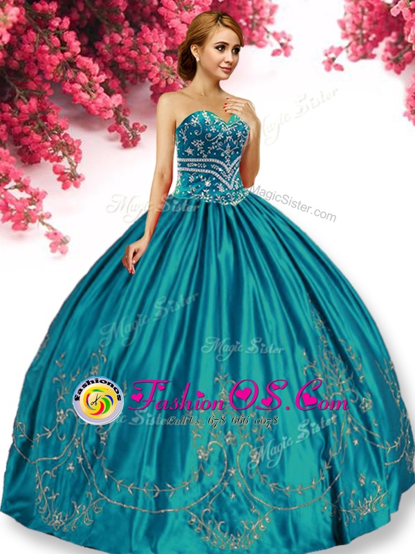 Taffeta Sleeveless Floor Length 15 Quinceanera Dress and Embroidery