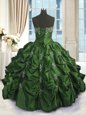 Taffeta Strapless Sleeveless Lace Up Beading and Appliques and Embroidery and Pick Ups 15th Birthday Dress in Green