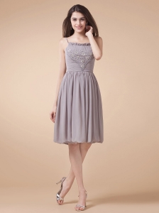 Spaghetti Straps For Grey Prom Dress With Beading Knee-length