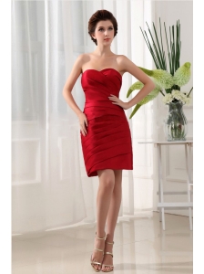 Wine Red Ruched Over Skirt and Mini-length For Simple Prom Dress