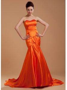 Sweet Red Prom Dress Sweetheart Brush Train Beading and Ruch