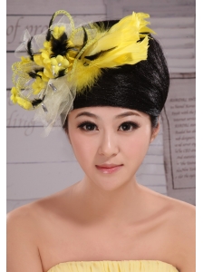 Fashionable Yellow and Black Feather Tulle Women’ s Fascinators