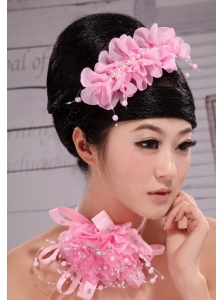 Beautiful Pink Taffeta Beading Hand Made Flowers Hair Combs