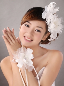 Popular White Feather Organza Flowers Fascinators and Wrist Corsage