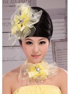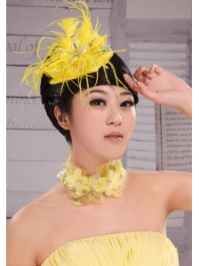 Pretty Yellow Beading Feather Flower Women’ s Fascinators For Party