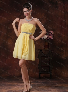 Champagne Strapless Ruch Chiffon Cheap Dama Dress