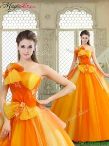 Cheap Appliques and Bowknot Quinceanera Gowns with One Shoulder