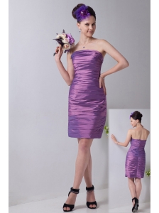 Lavender Column Strapless Mini-length Taffeta Bridesmaid Dress