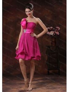 Fuchsia One Shoulder 2013 Appliques Short Dama Dress
