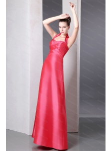 Halter Coral Red Column Ankle-length Taffeta Dama Dress