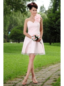 Hand Made Flowers One Shoulder Mini-length Tulle Dama Dress