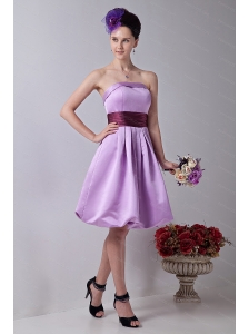 Simple A Line Strapless Lavender Bridesmaid Dresses with Belt