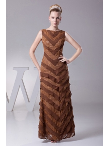 Bateau Brown Column Designer Custom Made Mother Of The Bride Dress