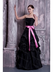Black A-line Strapless Sash and Pick-ups Dama Dress For Summer