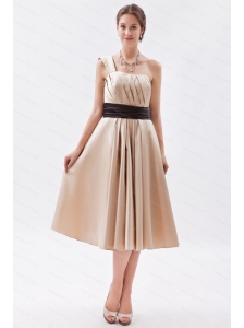 One Shoulder Tea-length Satin Champagne Dama Dress