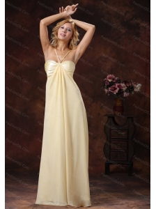 2013 Long Light Yellow Straps Ruched Bodice Dama Dresss