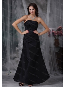 Black A-line Strapless Satin Ruch 2013 Dama Dresses