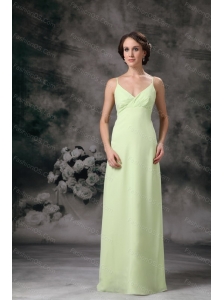 Cheap Yellow Green Column Straps Chiffon Long Dama Dress