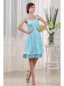 Halter Blue Knee-length Short Dama Dress