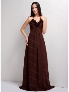 Halter Brown Hand Made Flowers Dama Dress 2013