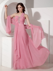 Long Pink Empire One Shoulder Beading Dama Dress 2013