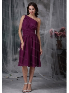 Purple One Shoulder Knee-length Cheap Dama Dress