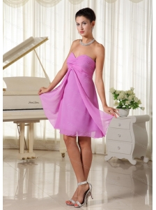 Light Pink Empire V-neck Chiffon Ruch Dama Dresses On Sale