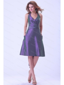 Purple Halter Short Taffeta 2013 Dama Dresses