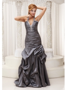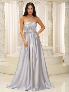 Silver Mother Of The Bride Dress Elegant With Strapless Ruched Bodice For Military Ball