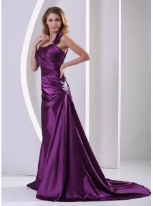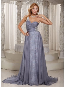 Custom Made Gray One Shoulder Ruched Bodice and Appliques Mother Of The Bride Dress