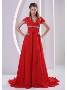 V-neck Burgundy Brush Train For Mother Of The Bride Dress Belt Customize In Montana