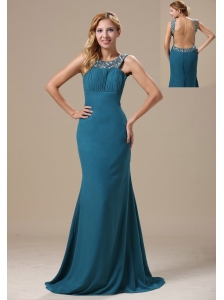 Teal Scoop Mother Of The Brides Dress With Beaded Decorate Shoulder In Atlanta Chiffon