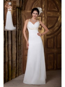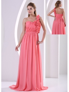 Customize Empire V-neck Prom Dress Chiffon Ruch Brush Train