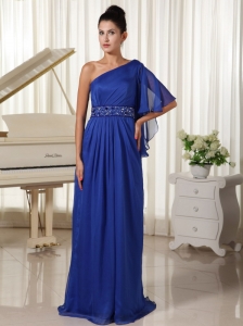 Navy Blue Mother Of The Bride Dress Empire One Shoulder Watteau Train Chiffon Beading