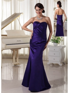 Simple Dark Purple Ruch Sweetheart Mother Of The Bride Dress Column Taffeta