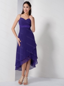 High-low Blue Spaghetti Straps Dis Count Dama Dress