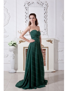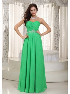 Long Green Empire Sweetheart Ruch and Beading Dama Dress