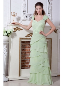 Beading and Rulles Layers Apple Green Straps Floor-length Dama Dress